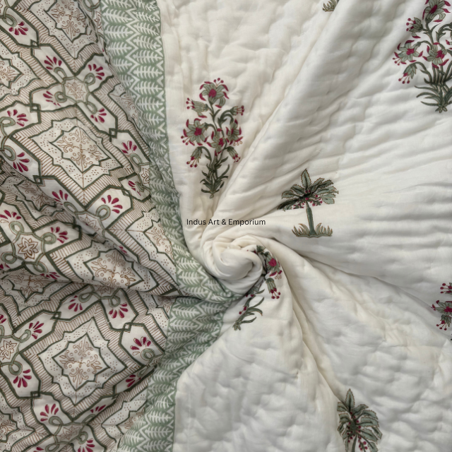 Couette imprimée bloc main personnalisée en gros 100% coton Jaipuri Razai textile de maison de luxe