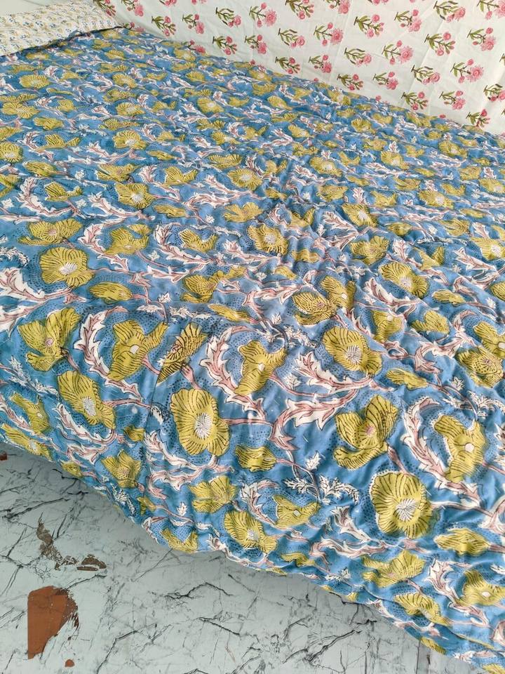 Couverture en coton imprimée à la main, taille californienne, motif floral, literie matelassée