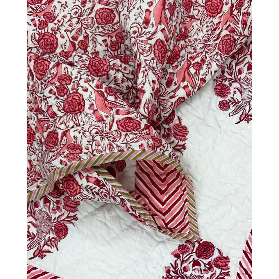Couette double réversible en coton 100% imprimée à la main, style vintage, écologique, avec motif floral, pour la maison et l'hôtellerie