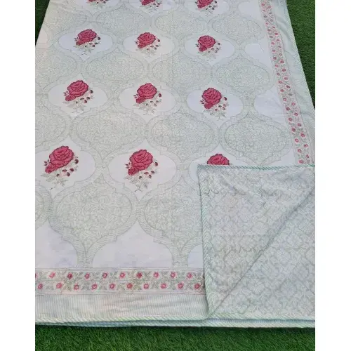 Couvertures de lit réversibles en coton blanc imprimées à la main Vinayakam Exports, fabriquées en Inde, garnissage en coton Flalean