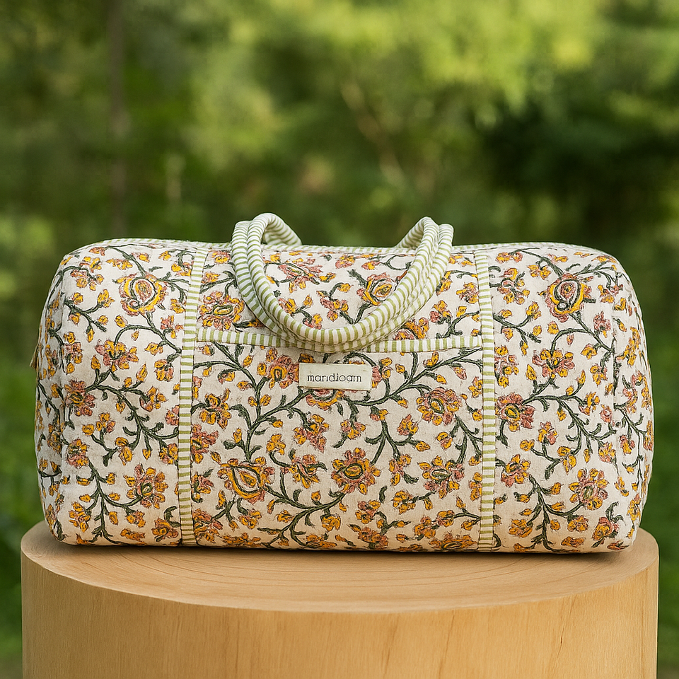 Main bloc imprimé coton sac polochon fait à la main week-end voyage fourre-tout fermeture éclair écologique léger grande capacité matelassé