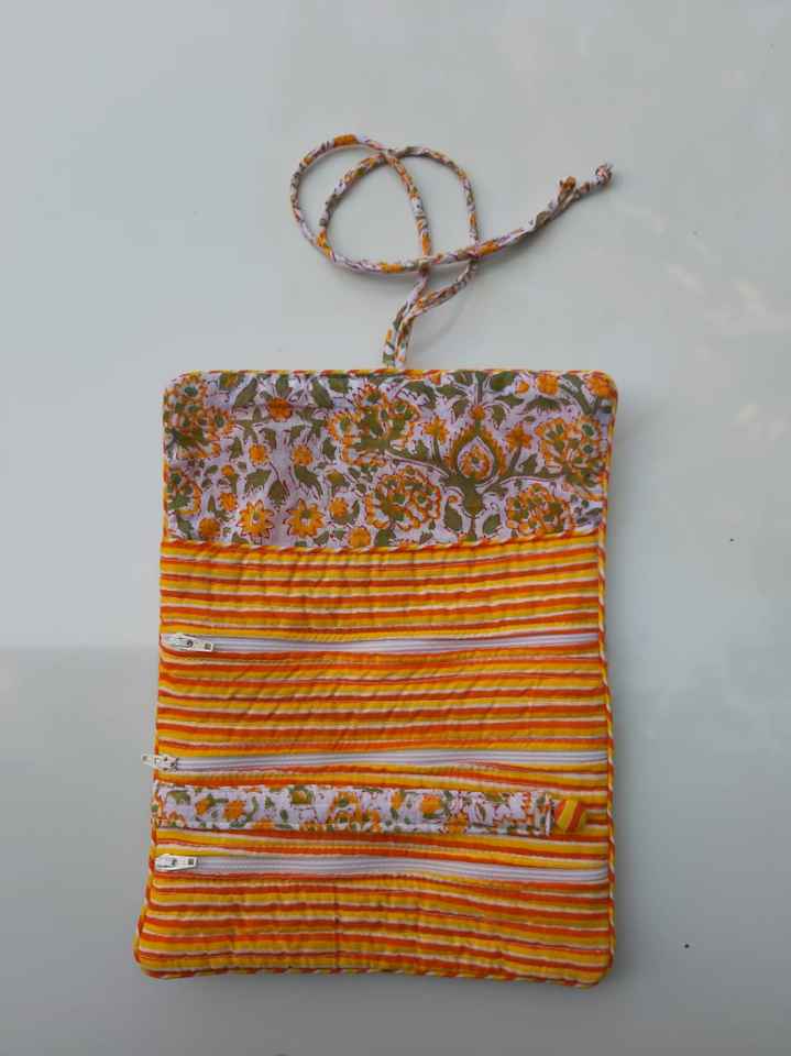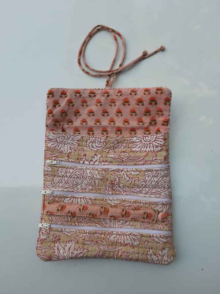 Sac de bijoux en tissu de coton avec imprimé Floral, sac de style bohème, sac de bijouterie fait à la main, avec pochette à fermeture éclair, pour cadeau, pour femmes