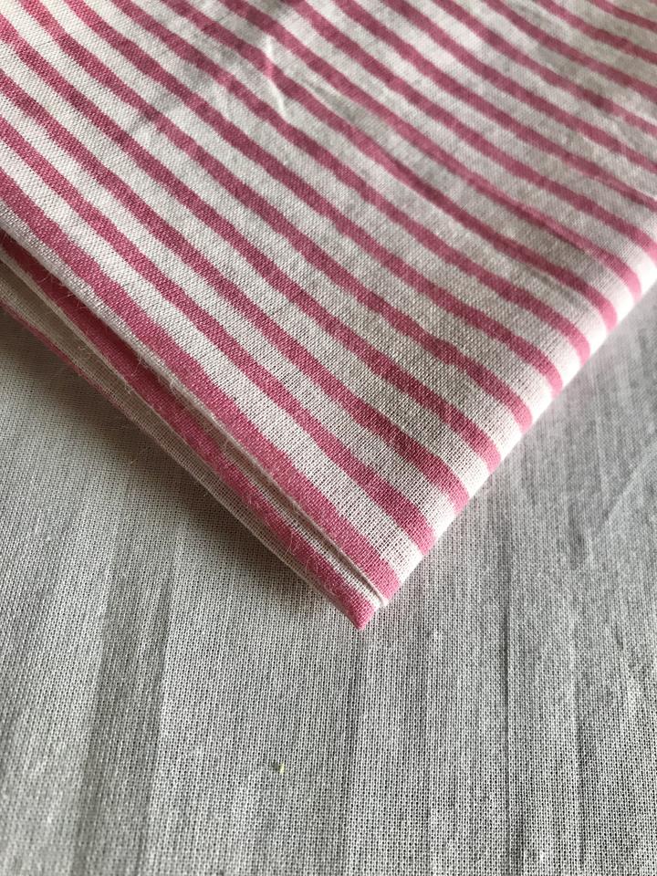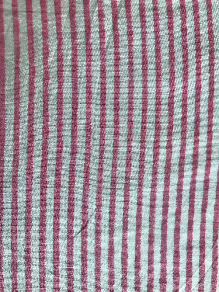 Hand Block Printed Cotton Fabric Pink & White Vertical Stripe Design