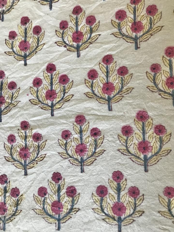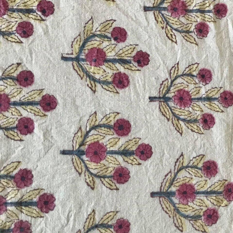 Tissu en coton imprimé à la main, motif floral petit et délicat (Booti) | Tissu ethnique indien rose et jaune