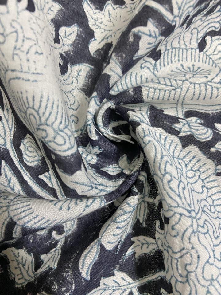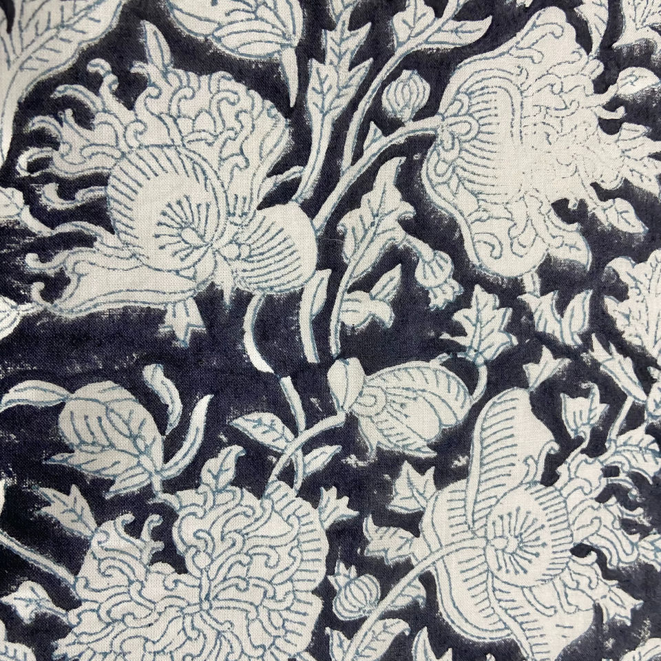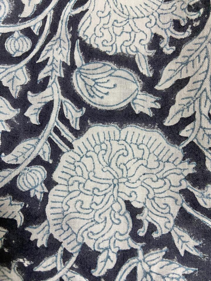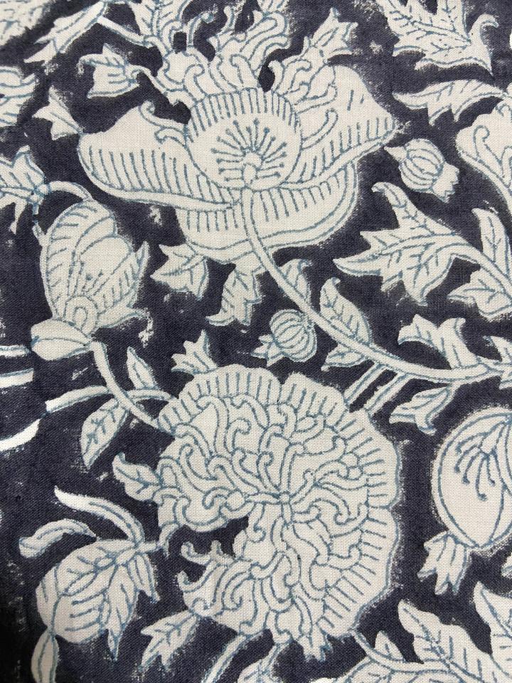 Tissu en coton imprimé à la main avec un motif floral audacieux Jaal sur fond foncé, textile artisanal traditionnel