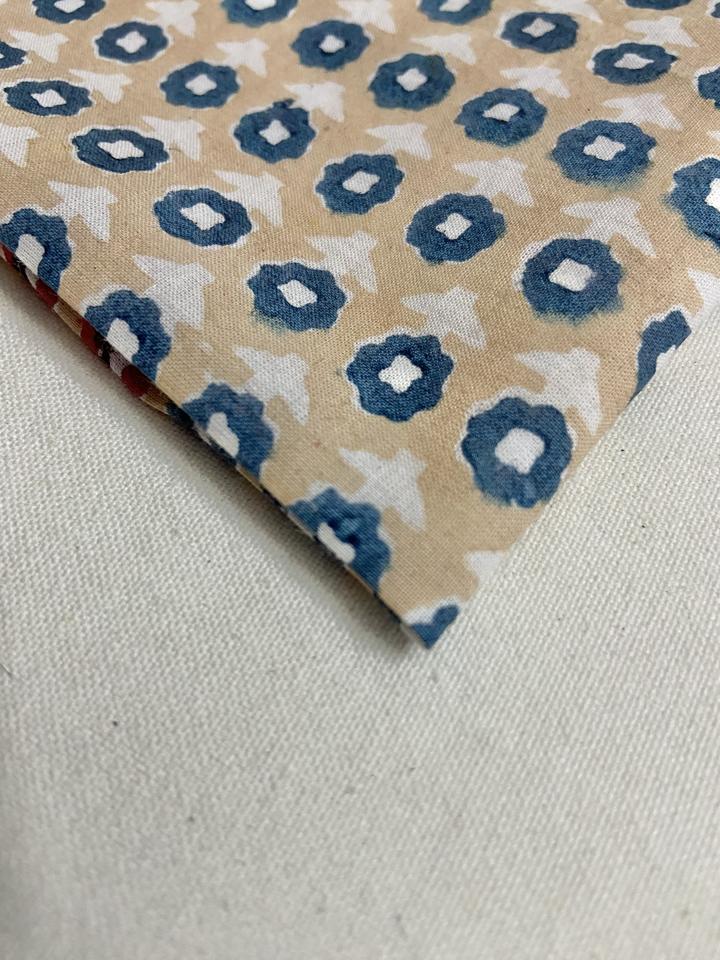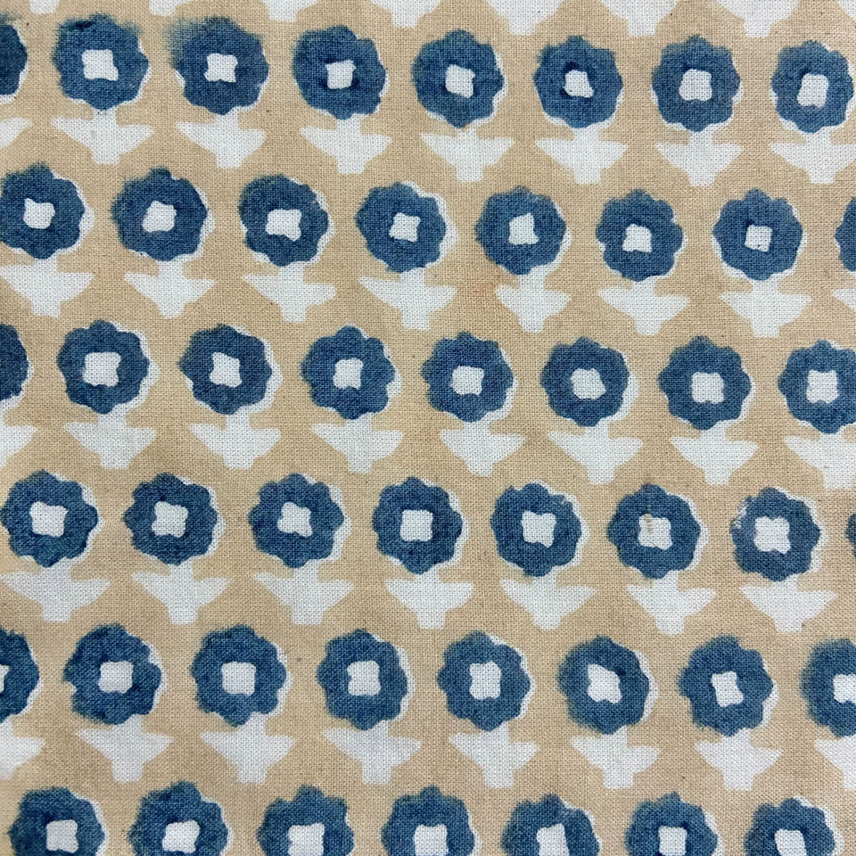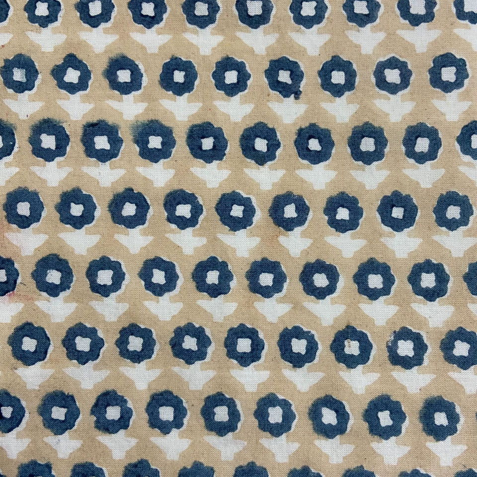 Tissu en coton imprimé à la main avec un motif floral géométrique de petite taille, textile artisanal indien traditionnel