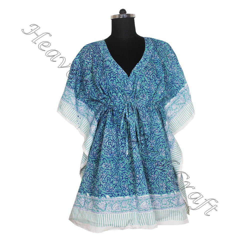 Abaya Kaftan Arabe Jalabiya Dubaï Mode Bloc de Main Imprimé Coton Caftan Caftan Fait Main KFCS057