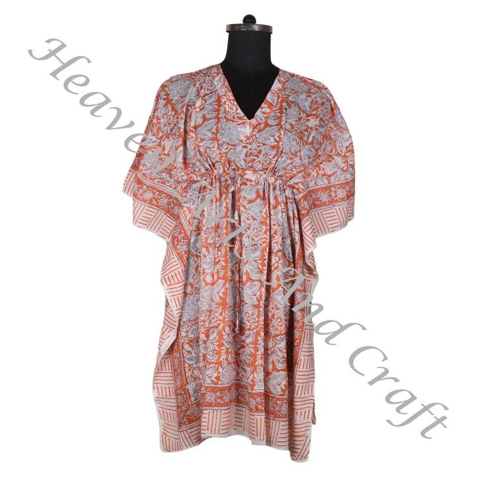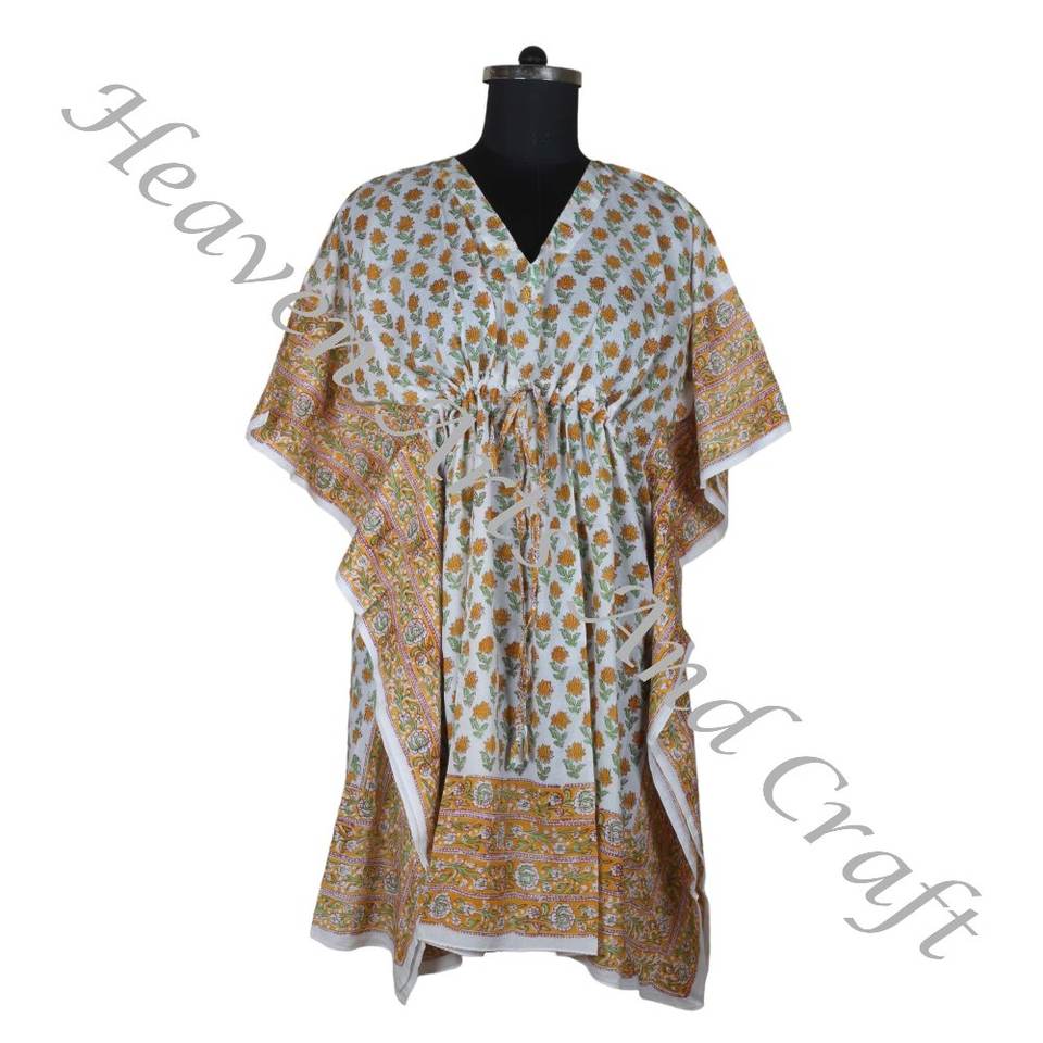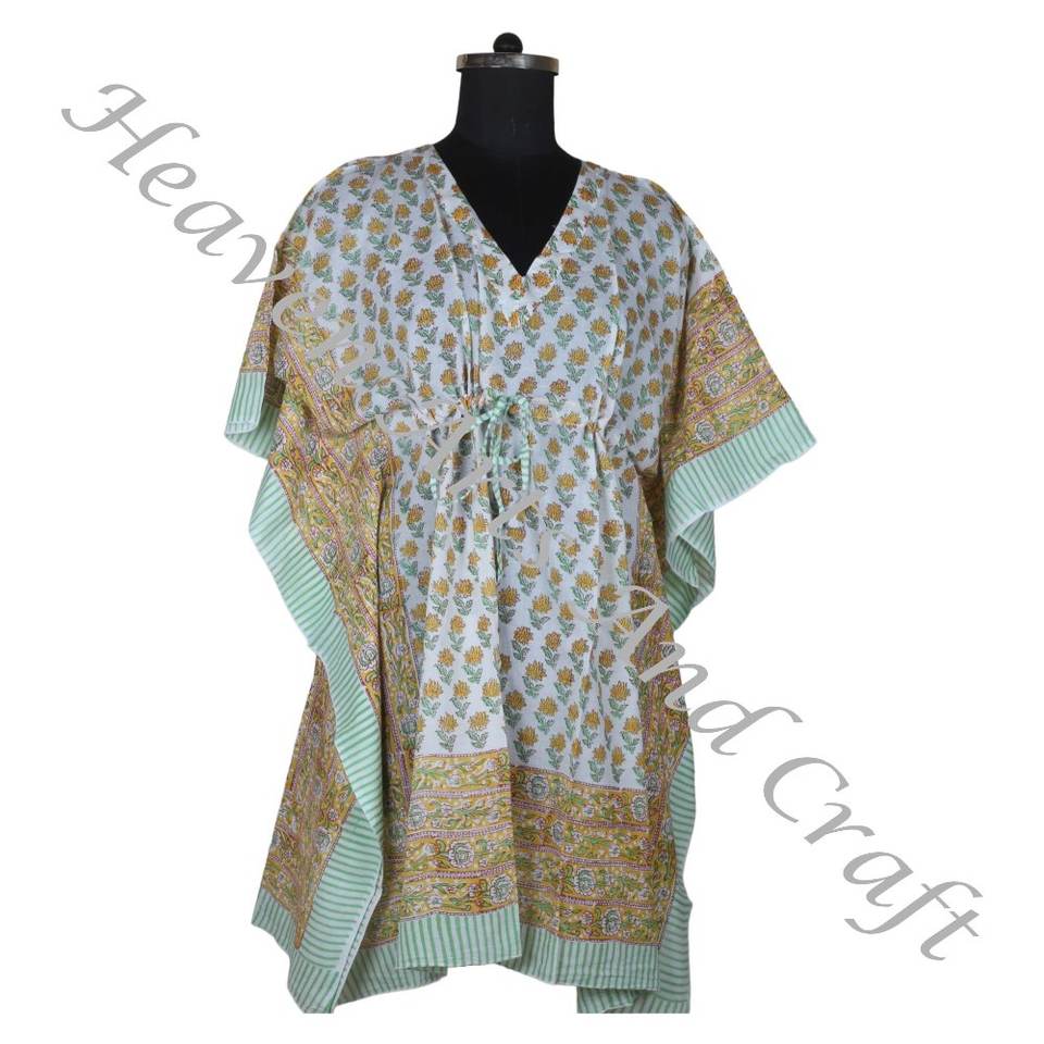 Main Bloc Imprimé Coton Caftan Fait Main Indien Abaya Caftan Dubaï Mode Jalabiya Manches Courtes ODM Approvisionnement