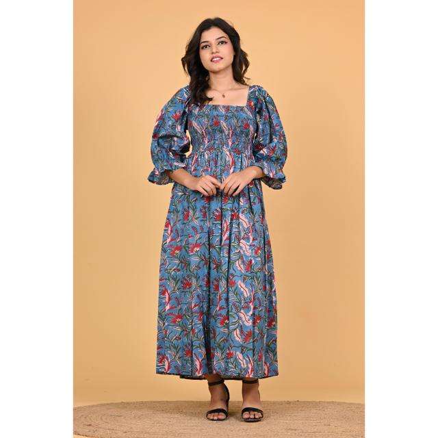 Mots-clés:Robe pour femme en coton imprimé au bloc