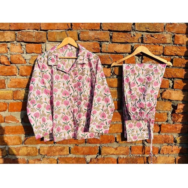 Ensemble de pyjama en coton imprimé à la main pour femmes, vêtements de nuit doux et respirants, vêtements de sommeil confortables, fabriqués de manière traditionnelle
