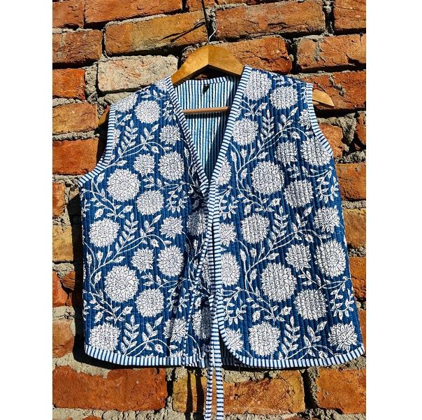 Veste matelassée en coton imprimée à la main, légère et chaude, vêtement d'extérieur artisanal traditionnel, idéale pour un style décontracté et ethnique