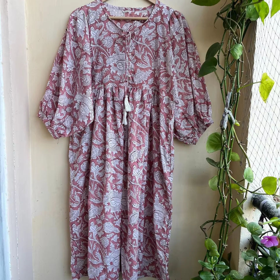 Main bloc imprimé coton robe d'été courte tenue décontractée techniques brodées gland coton indien robe courte fatiguée