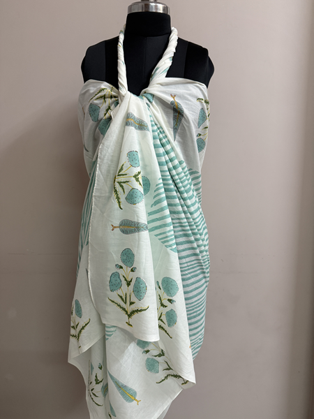 Châle indien traditionnel en coton imprimé à la main pour femmes, séchage rapide, respirant, mettant en valeur l'artisanat et l'unicité culturelle