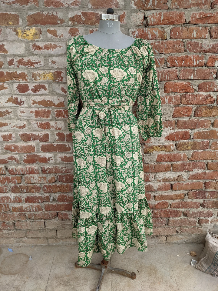 Robe imprimée bloc à la main Robe en gaze de coton indien Robe boho hippie florale bohème