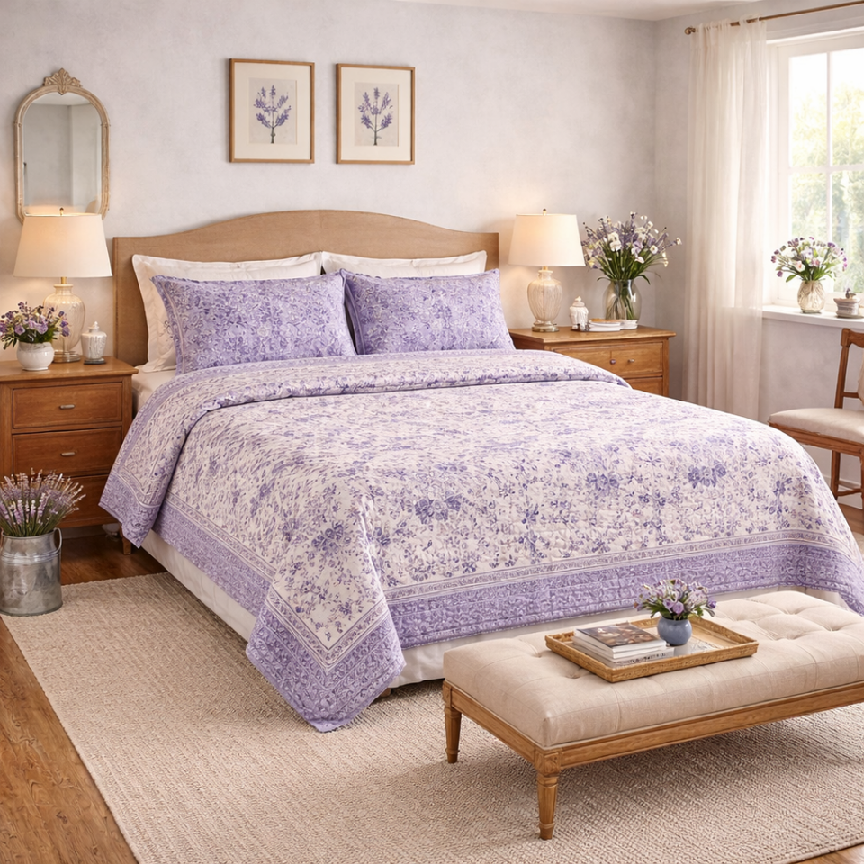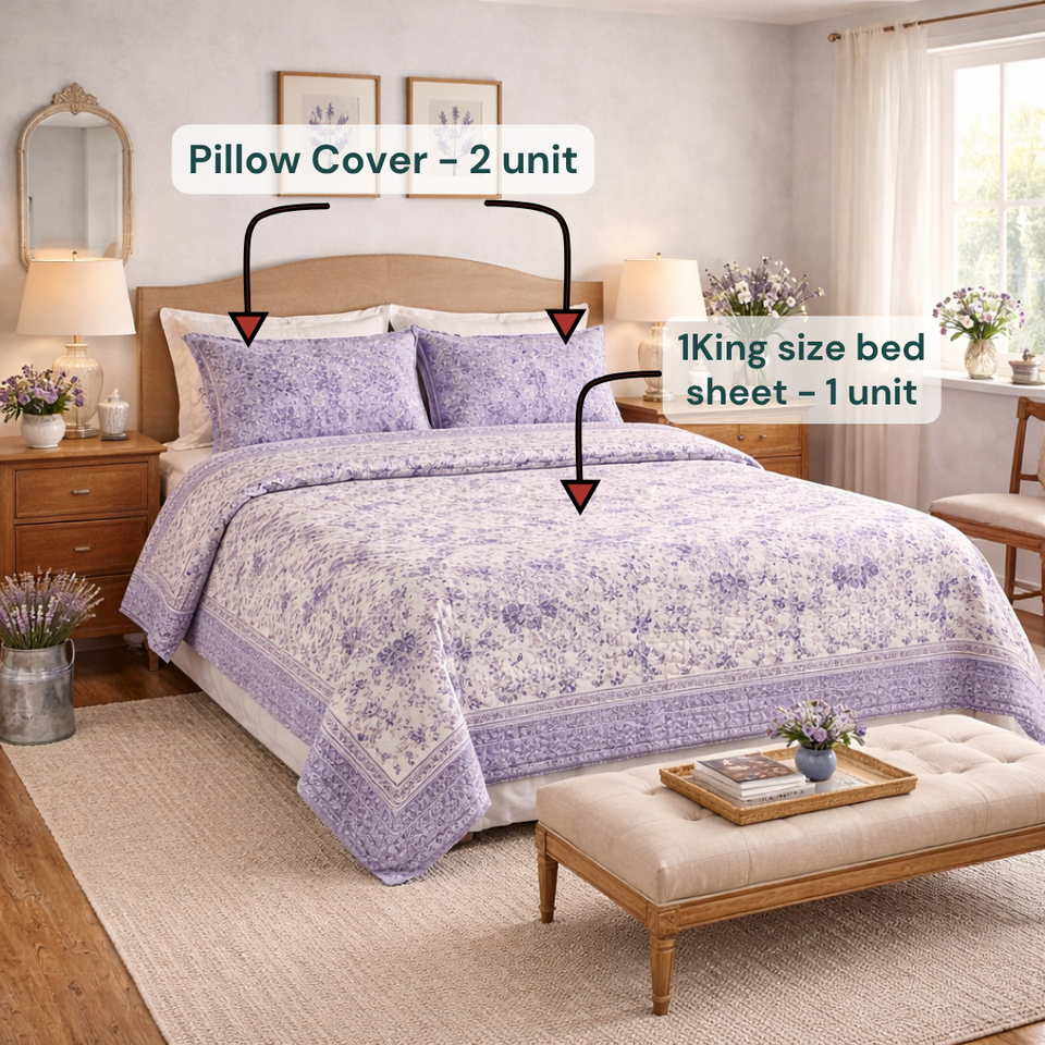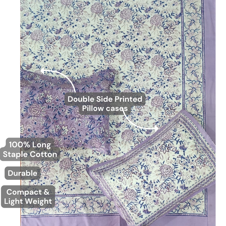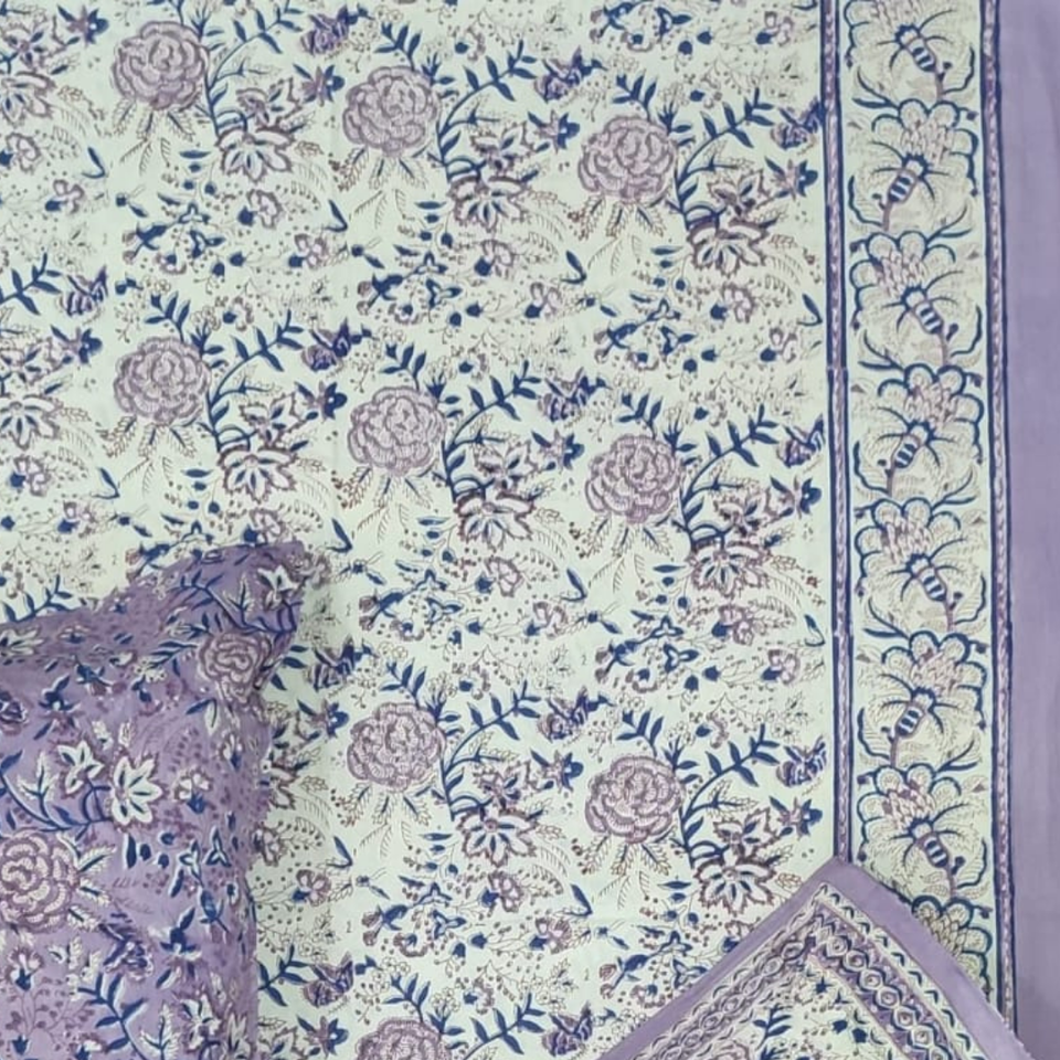 Drap de lit en coton 100% imprimé à la main de Jaipur, taille King, motif floral, artisanat indien, doux, respirant, durable, utilisation hospitalière