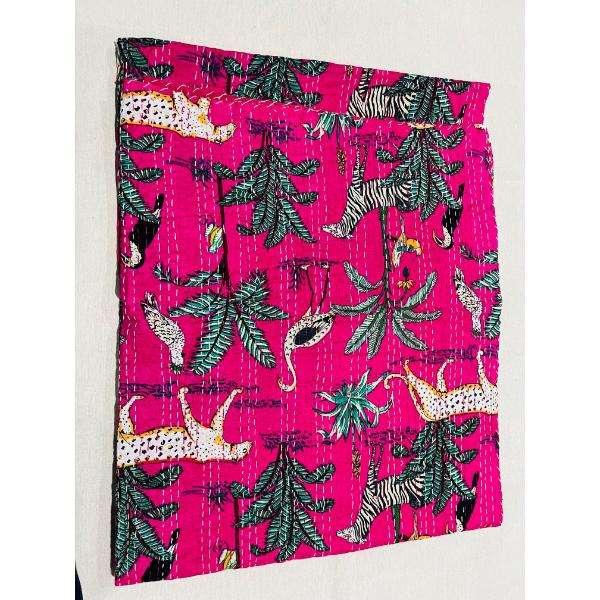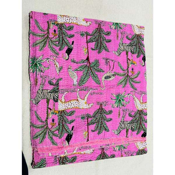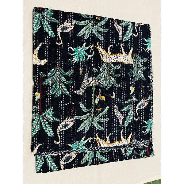 Couvre-lit en coton Kantha imprimé à la main avec des motifs textiles artisanaux et des couches douces pour un sommeil confortable