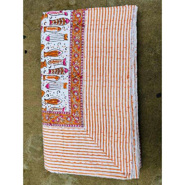 Couvre-lit Kantha imprimé à la main, réversible, en coton, patchwork floral artisanal, léger, pour toutes les saisons, pour chambre à coucher