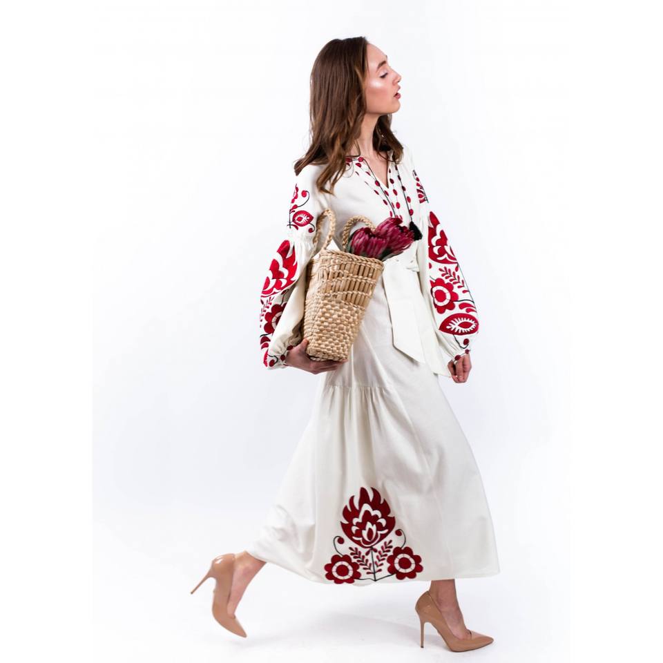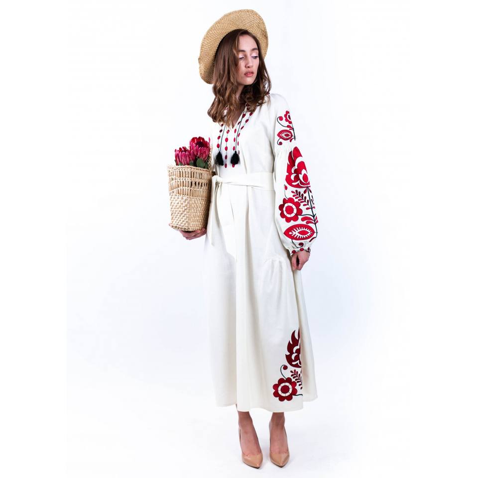 Robe longue tunique ukrainienne à col en V brodée, imprimée à la main, à manches longues, pour femme, nouveau design