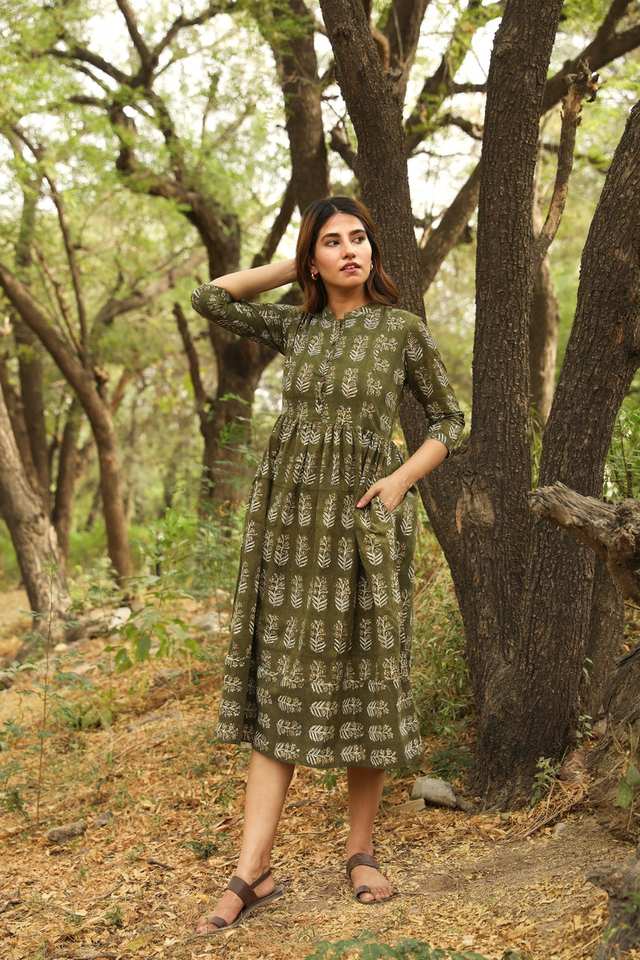 Robe en Lin Imprimée à la Main Style Bohème Robe en Coton Casual Occasionnelle Vacances d'Été Femme
