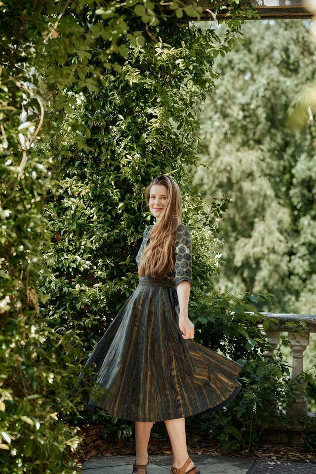 Robe Mandali Imprimée à la Main, Longueur Cheville, Bohème, Vert Bleu, Coton Floral, Robe Casual Occasionnelle, Fait Main