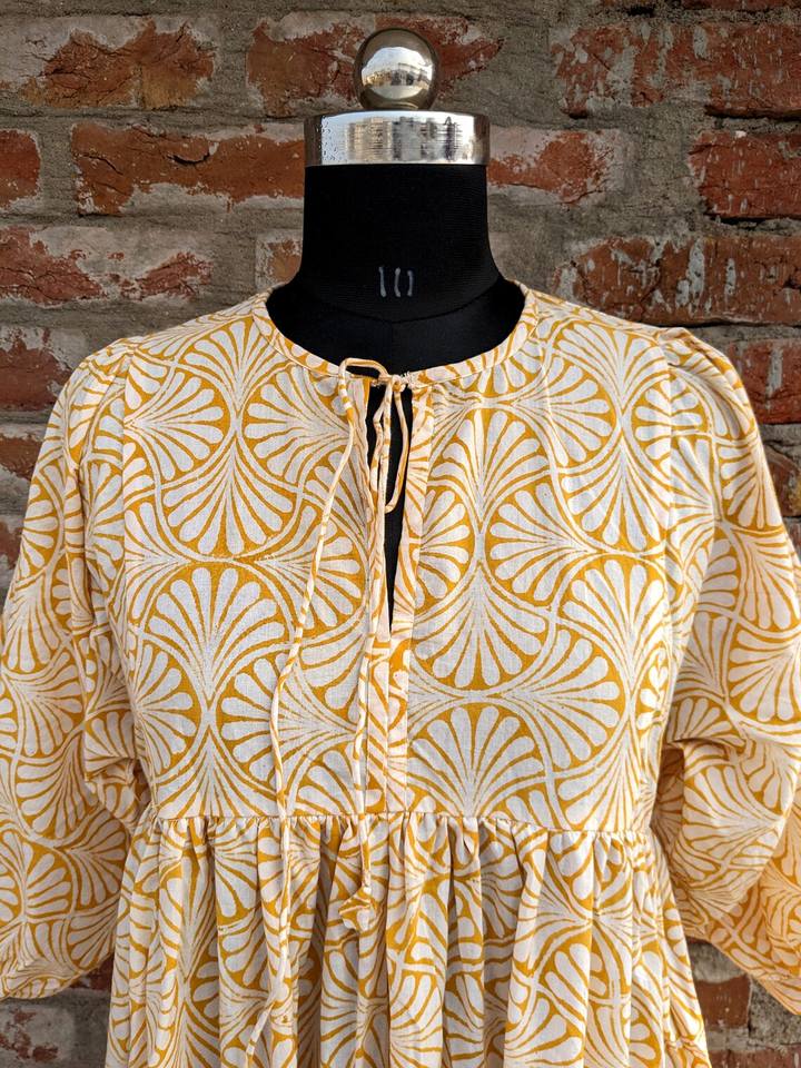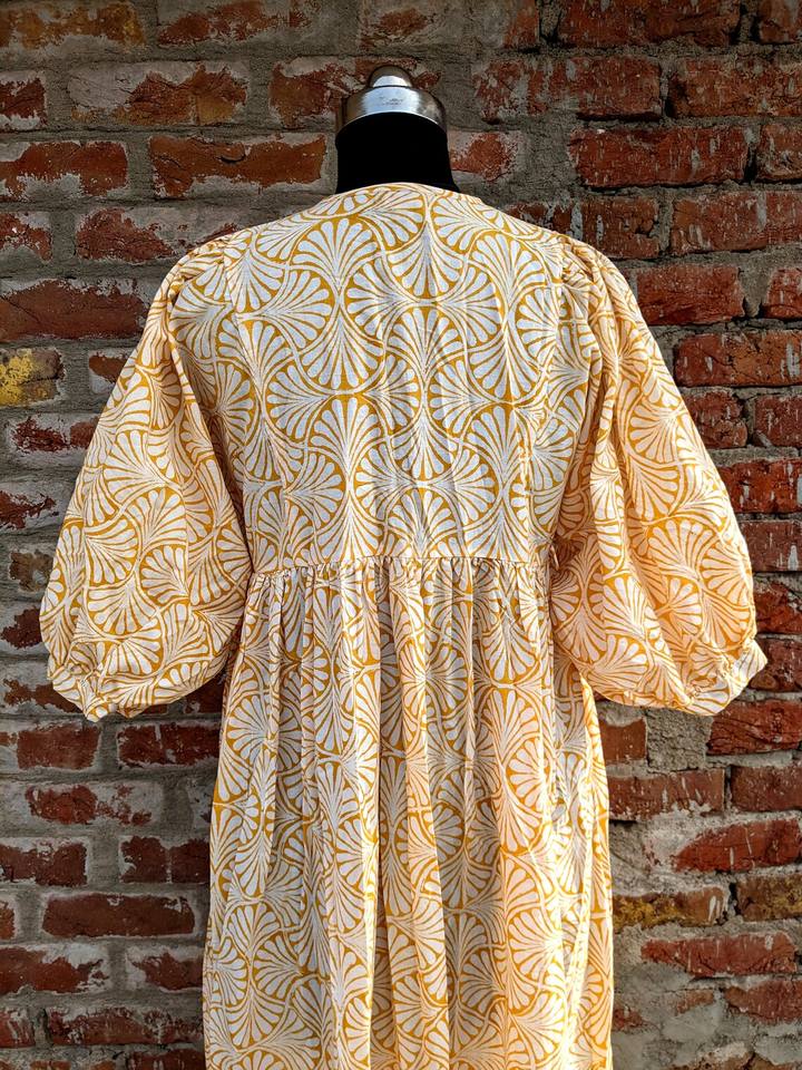 Robe maxi imprimée à la main pour l'été, en coton floral, faite à la main, durable pour l'automne