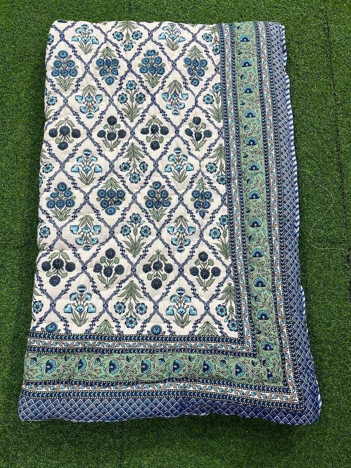 Couverture légère et douce en coton écologique imprimé à la main, motif floral indien réversible, style Kantha Jaipuri
