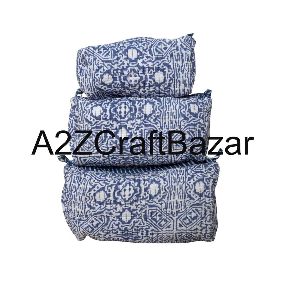 Ensemble de trousses de toilette et de maquillage en coton pur 100 % imprimé à la main, matelassé, avec fermeture éclair, pour voyage, ensemble de 3 tailles