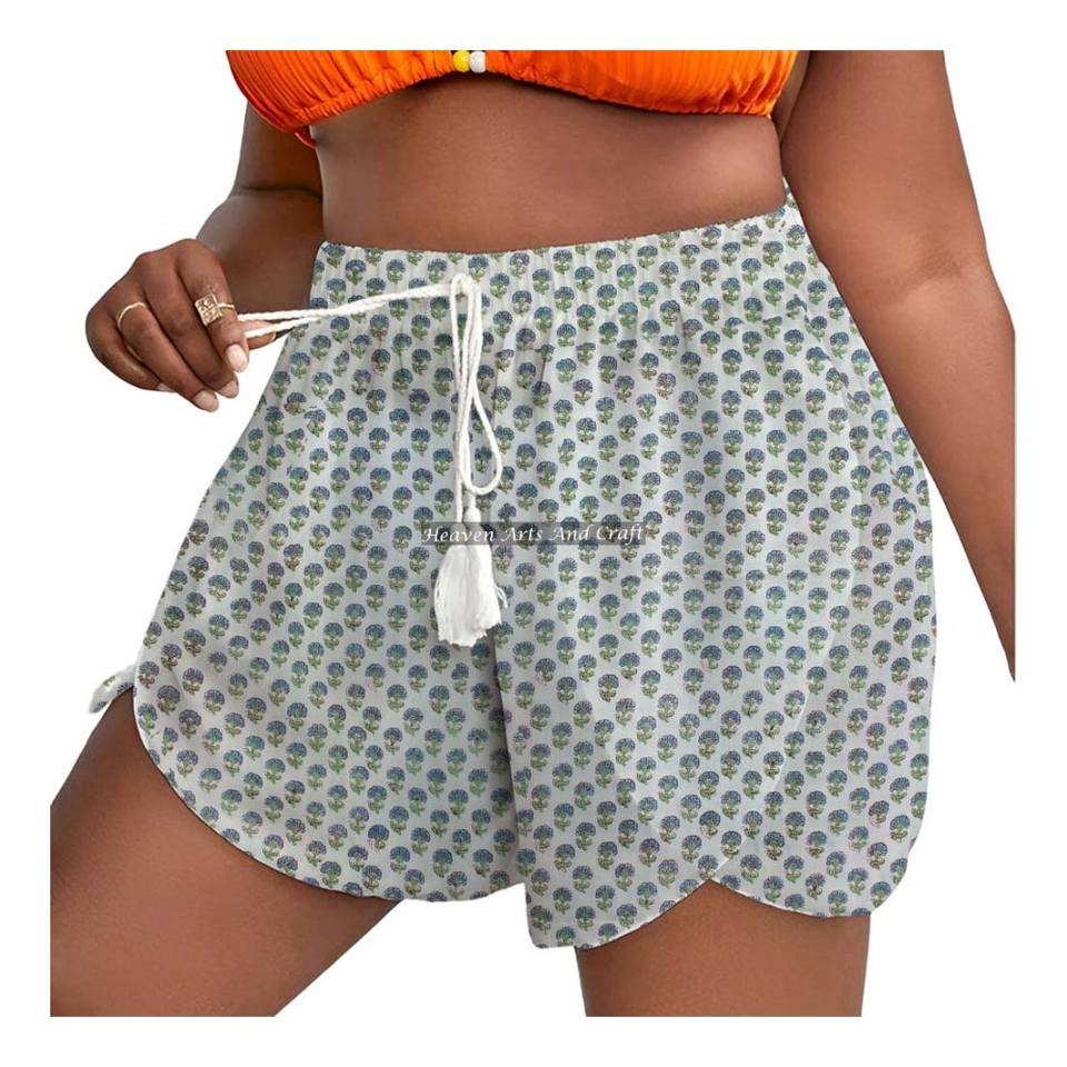 Nom du produit:Shorts à cordon de serrage en corde, imprimés à la main au bloc, 100 % coton