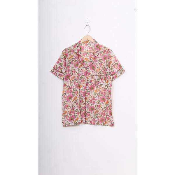 Ensemble de pyjama court décontracté en satin de coton pur respirant, imprimé floral à la main, pour femme, collection automne, avec taille élastique et col rabattu