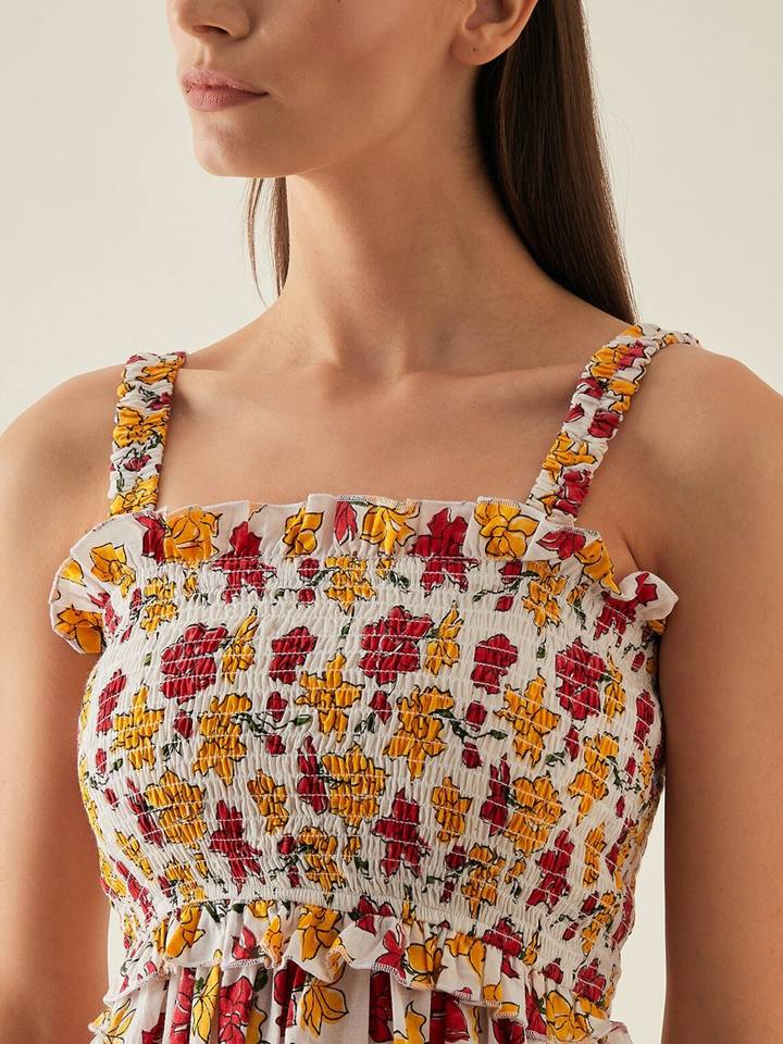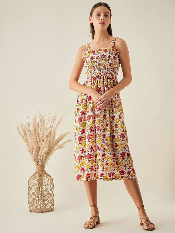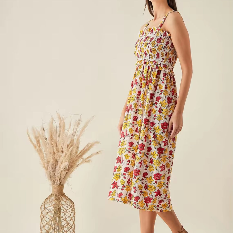 Robe Maxi sans manches imprimée bloc à la main pour femmes Style décontracté bohème fabriqué à partir de tissu de coton indien pur tour de taille naturel