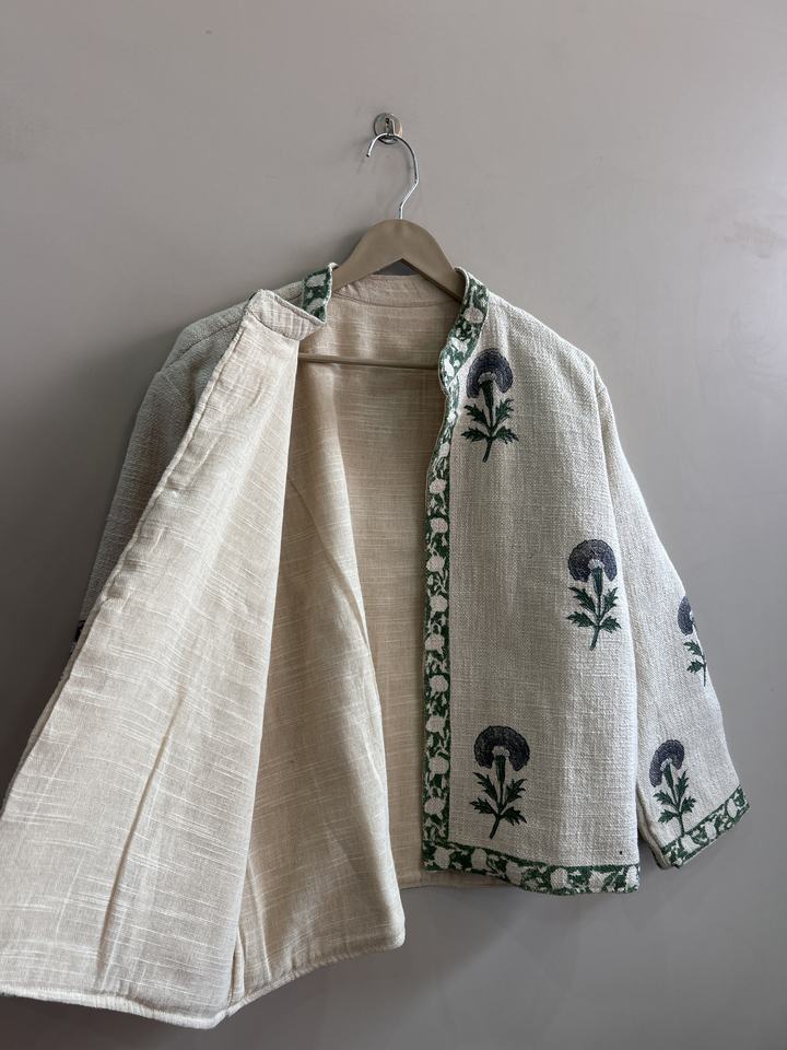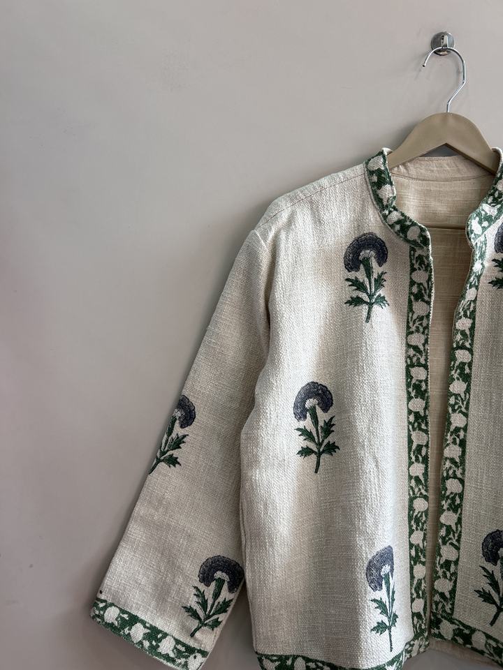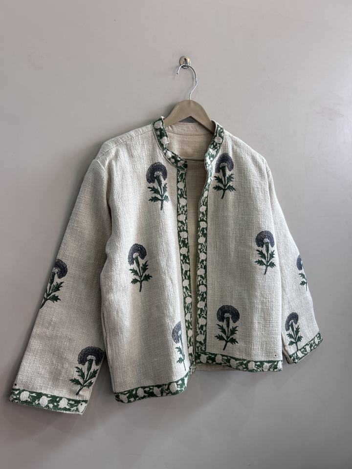 Veste courte pour femme en coton TNT imprimé à la main, motif floral, style bohème vintage, veste artistique