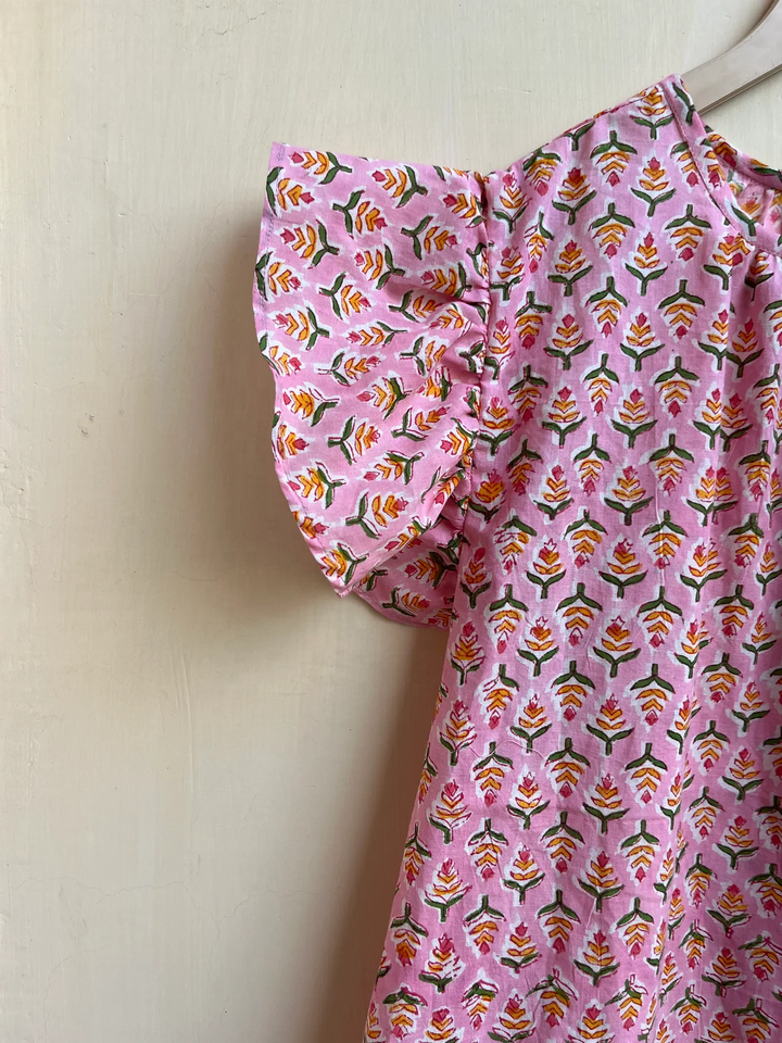 Haut en coton imprimé à la main pour femme, haut d'été en coton imprimé floral à manches courtes, cadeau pour elle
