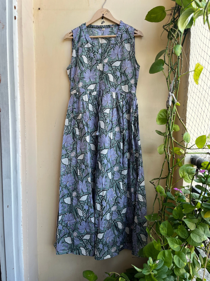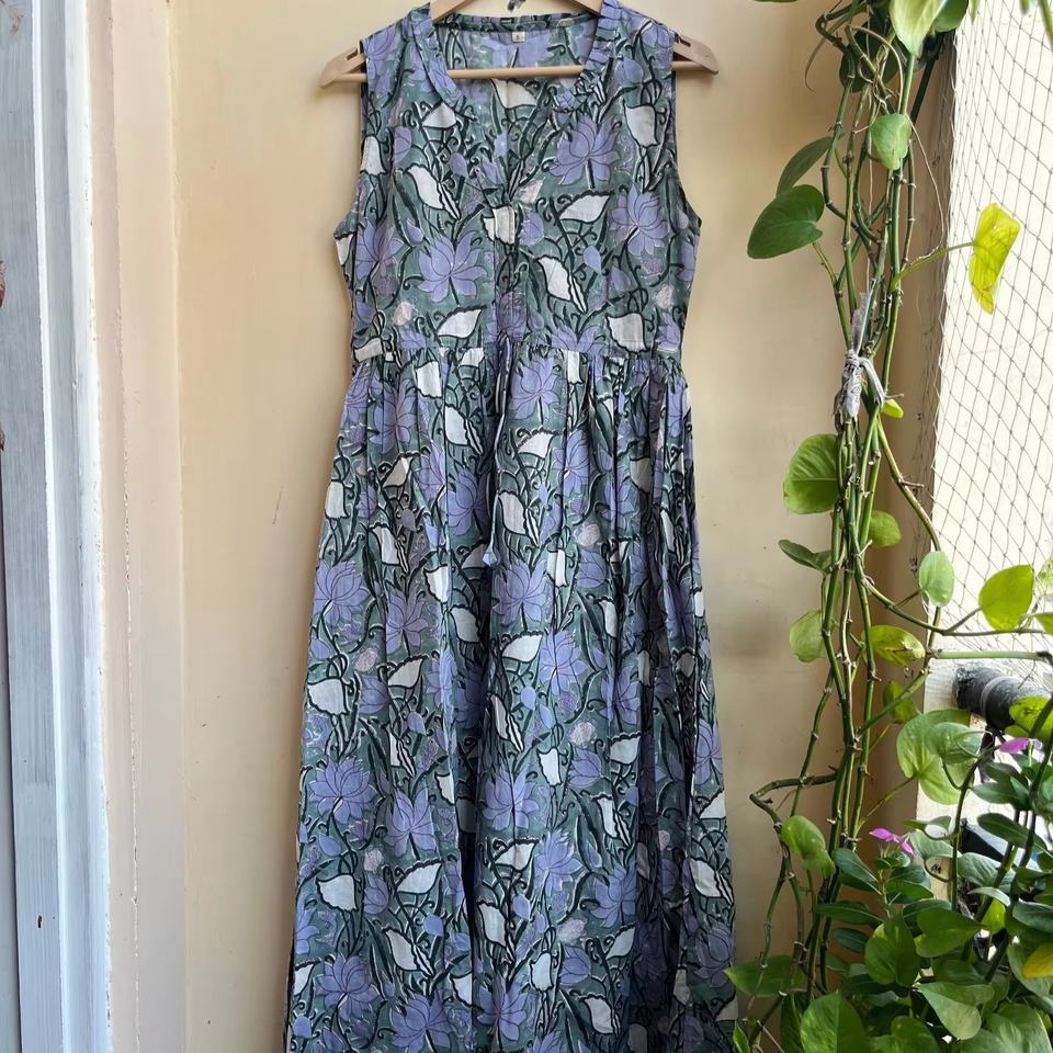 Robe longue tunique en coton indien à motif floral imprimé à la main pour femme, collection 2026, best-seller