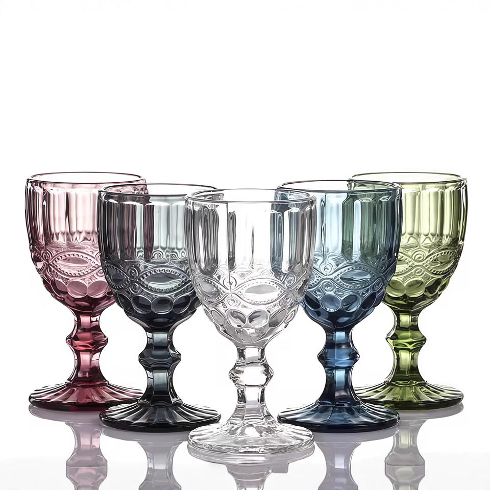 Verres à vin contemporains en cristal coloré soufflé à la main, facettés, bleu, rose, vert, pour les fêtes, la maison, le bar, la décoration