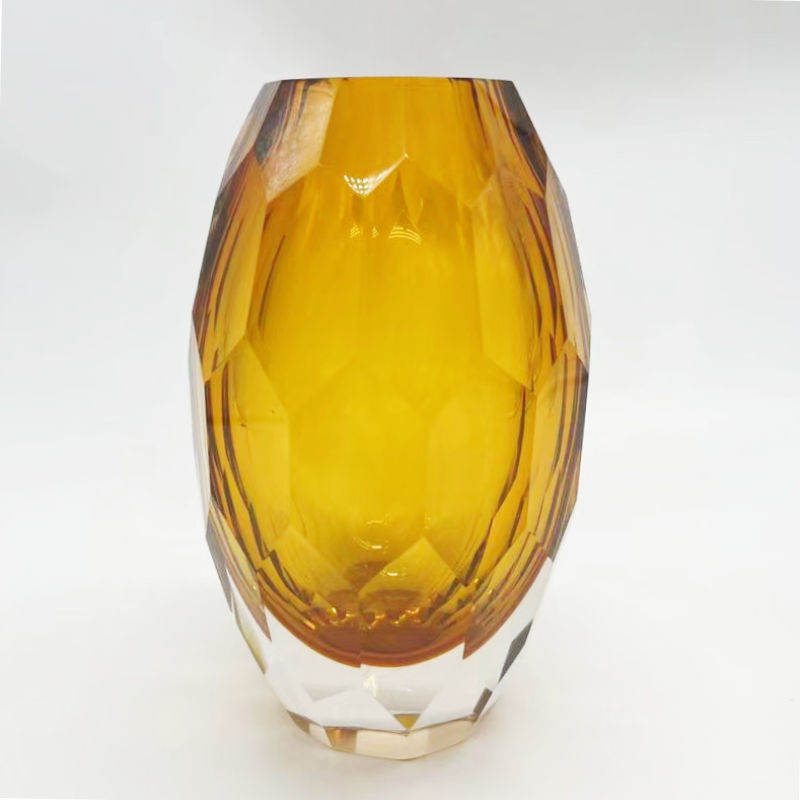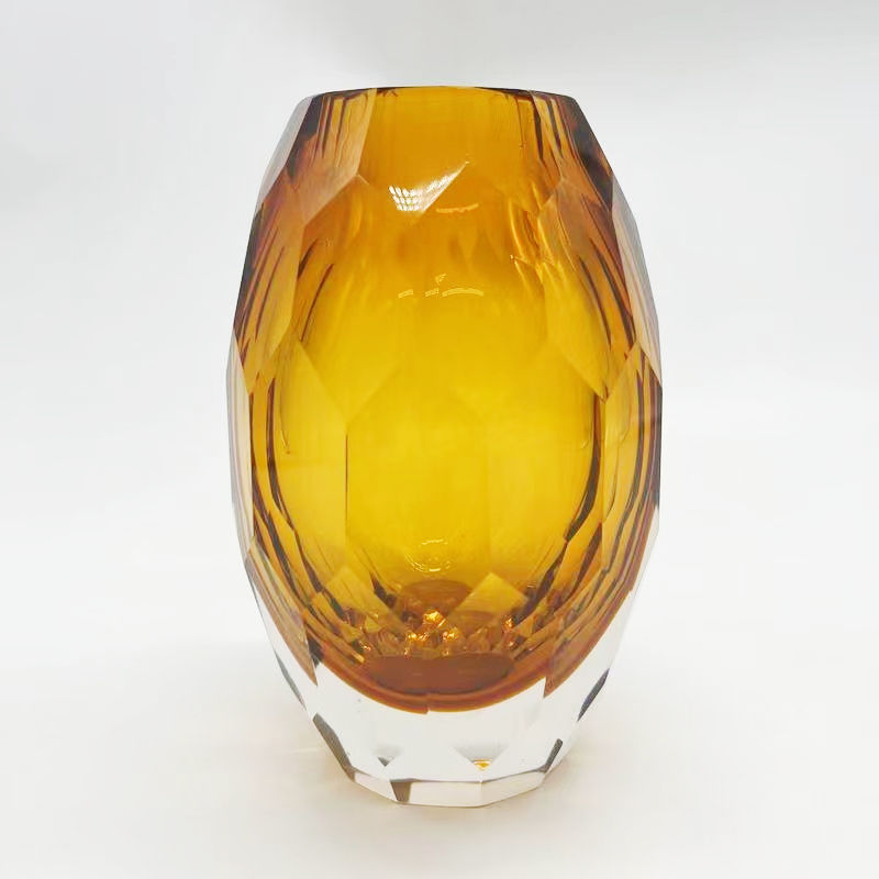Product Name:Hand Blown Tawny Cut Murano Glass Vase Handicraft with Simple Wind
