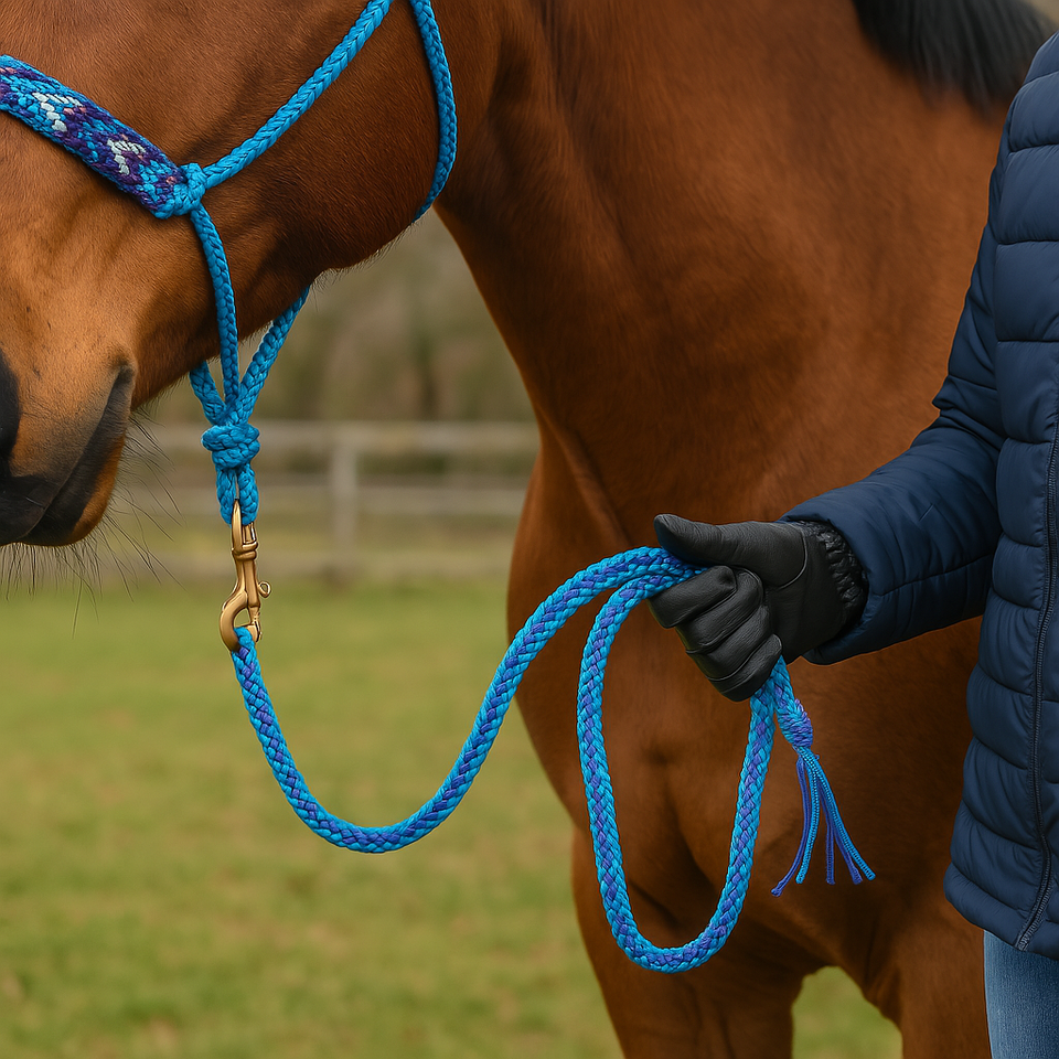 Cordon de cheval en poly durable avec mousqueton tressé à la main pour le trail et l'entraînement