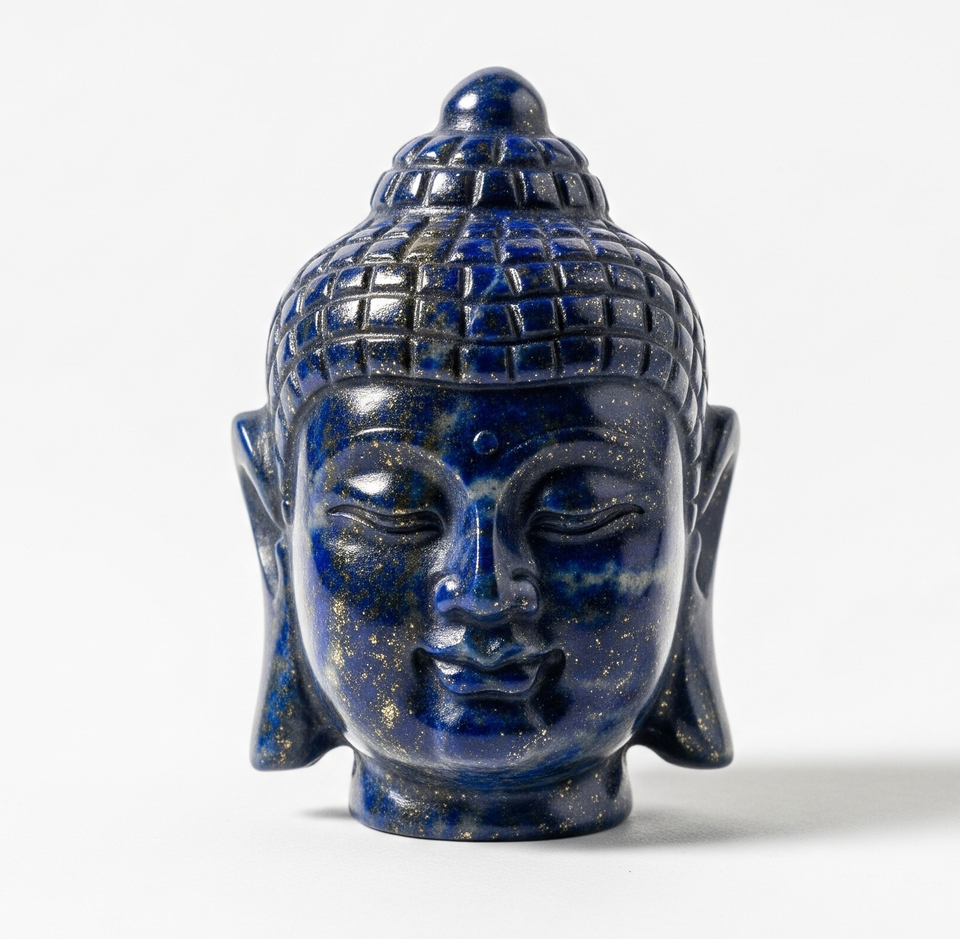 Hand-Carved Buddha Head Statue Figurine Business Gift with Lapis Lazuli Semi-Precious Gemstone Craft Engraved Made in India