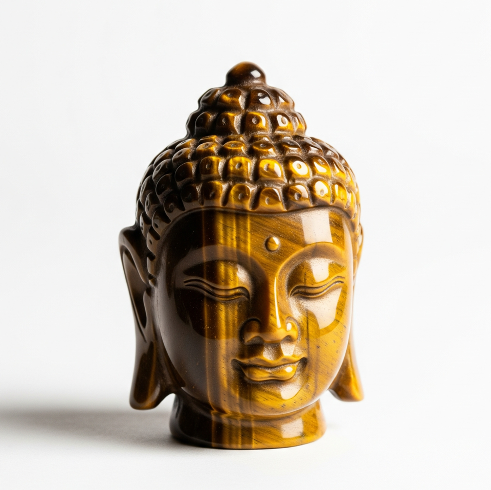 Hand-Carved Business Gift Buddha Head Statue Figurine Tiger Eye Semi-Precious Gemstone Craft Engraved India Healing Crystal