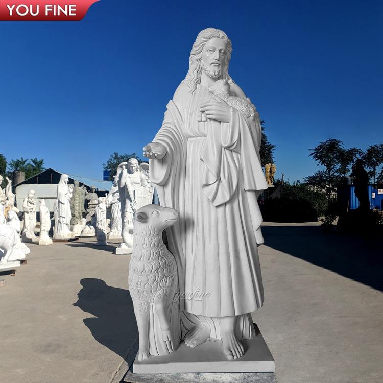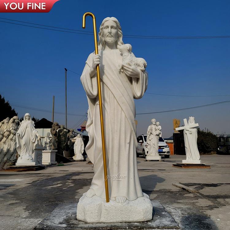 Sculpté à la main église décor marbre berger garçon Statue jésus Statue à vendre