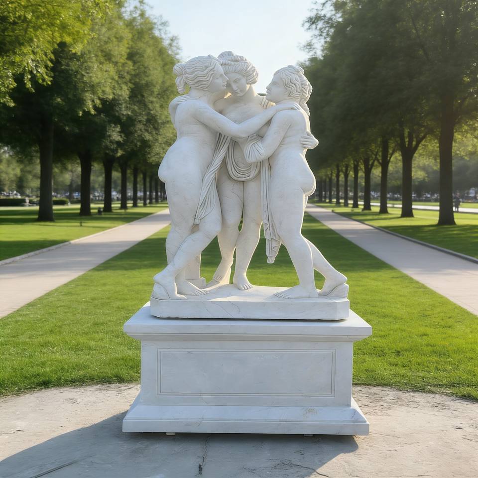 Statue sculptée à la main des Trois Grâces en marbre blanc massif classique, sculpture féminine nue pour l'aménagement paysager intérieur et extérieur