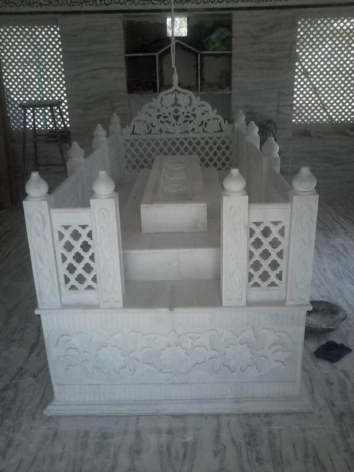 Structure de mausolée moderne islamique en marbre blanc, sculptée à la main, durable et personnalisable, à fixation au plafond