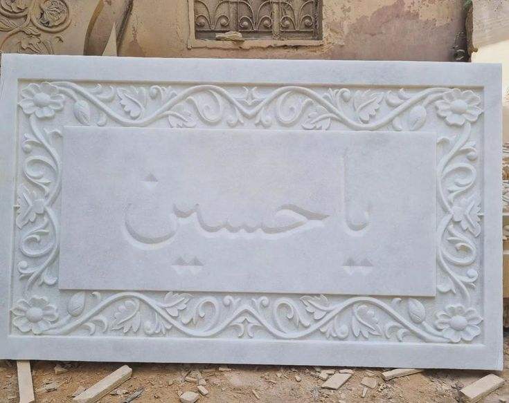 Panneau de porte de mosquée et de dargha en marbre blanc durable sculpté à la main, calligraphie islamique, design traditionnel imperméable, montage mural