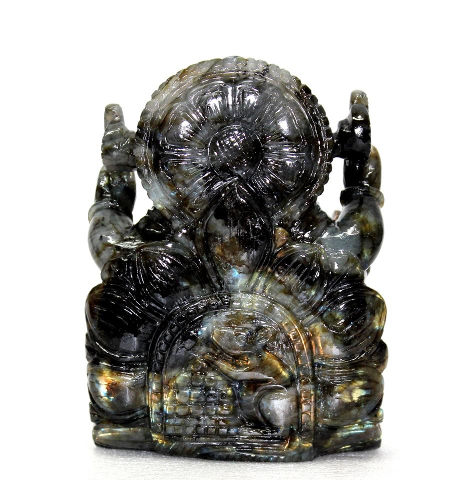 Statue de Ganesha en Labradorite Flashy sculptée à la main Sculpture sur pierre naturelle en cristal de guérison indien Fabriqué en Inde Style Chakra