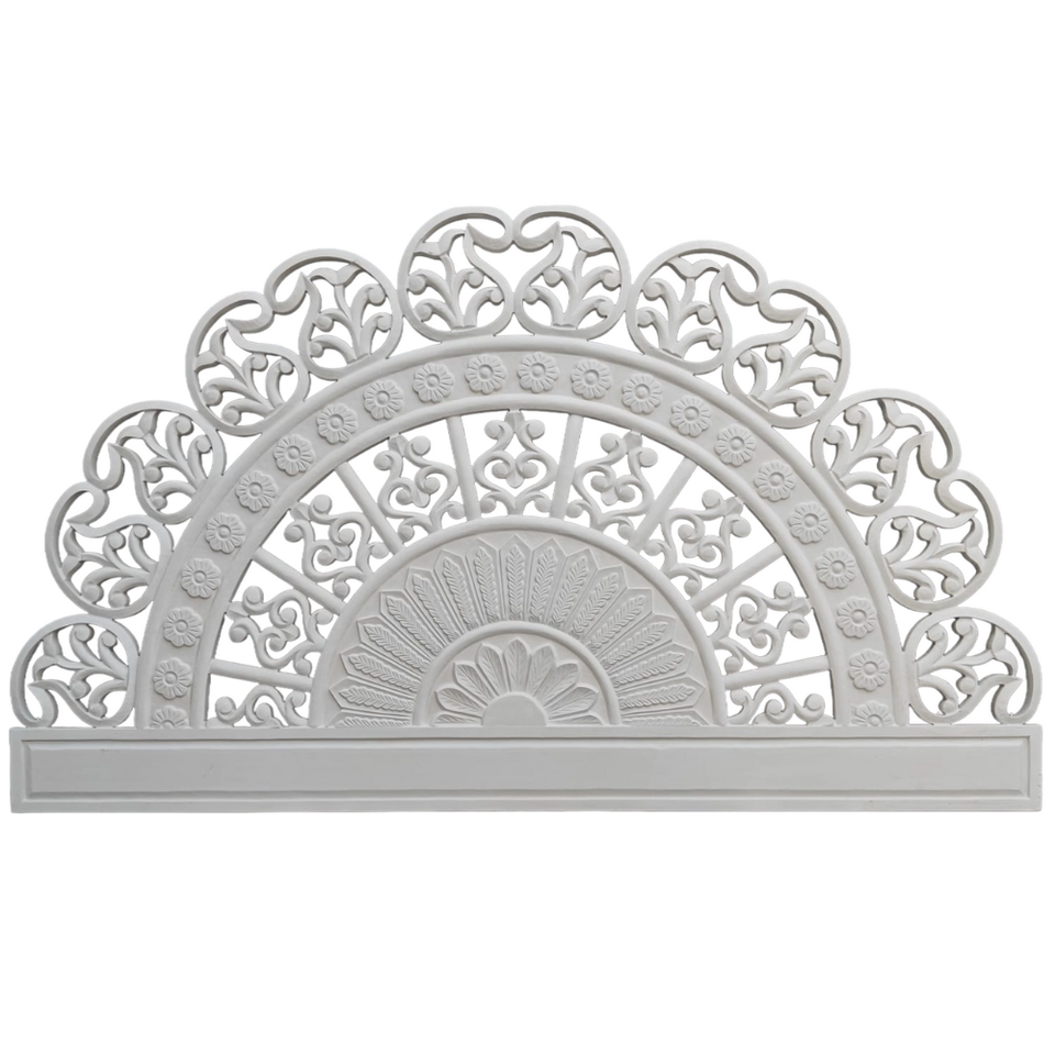 Tête de lit de lit réglable en hauteur et éclairée, sculptée à la main, motif floral mandala, décoration tropicale blanchie, décoration de meubles de chambre à coucher d'appartement