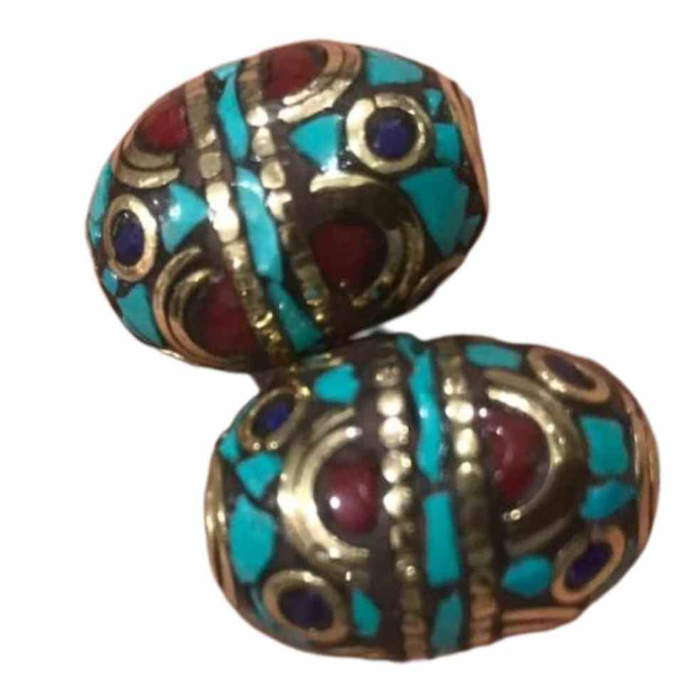 Perles de bijoux tibétains ovales incrustées en alliage de cuivre vert sculptées à la main