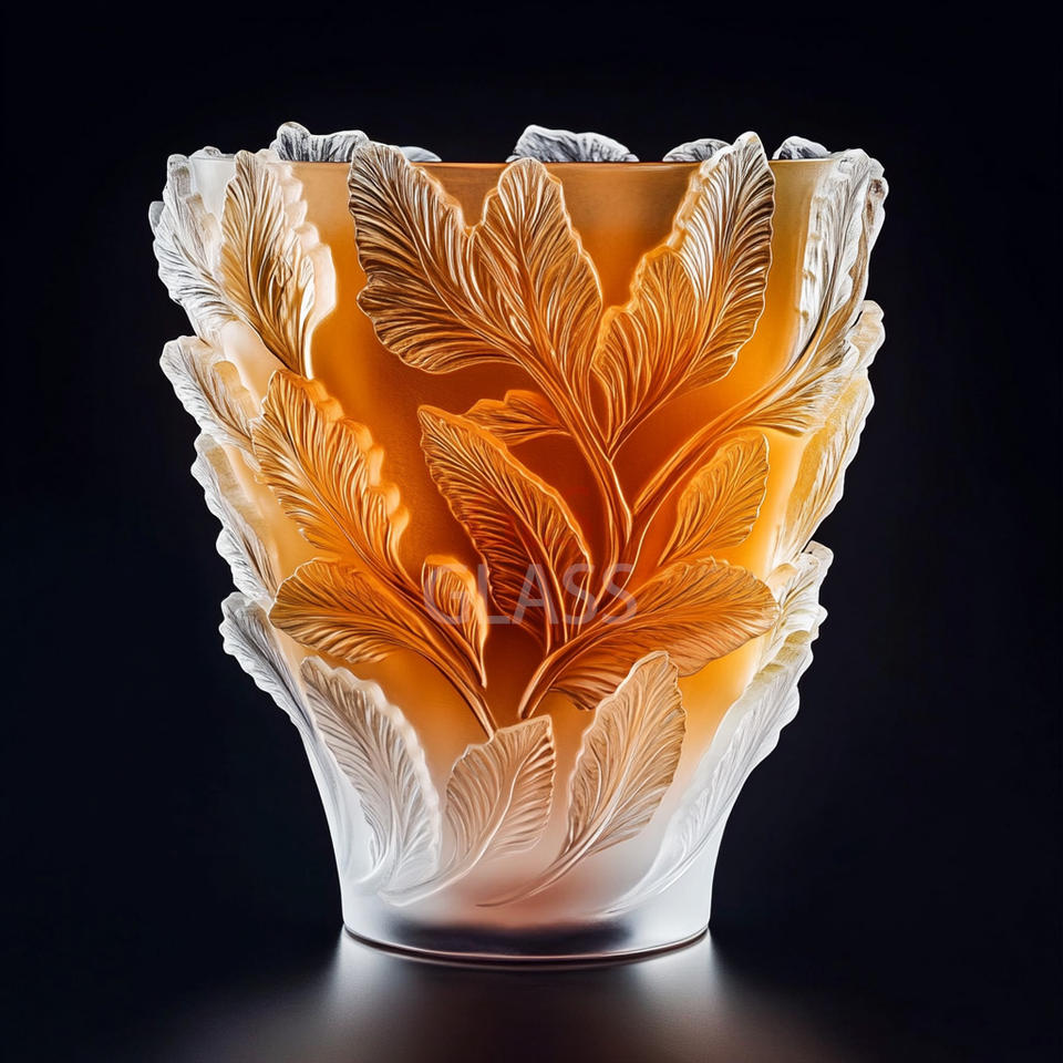 Vase en relief de feuille de verre de cristal sculpté à la main