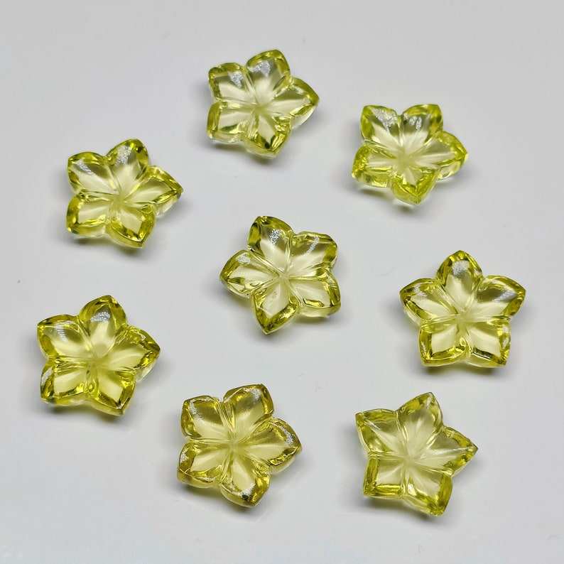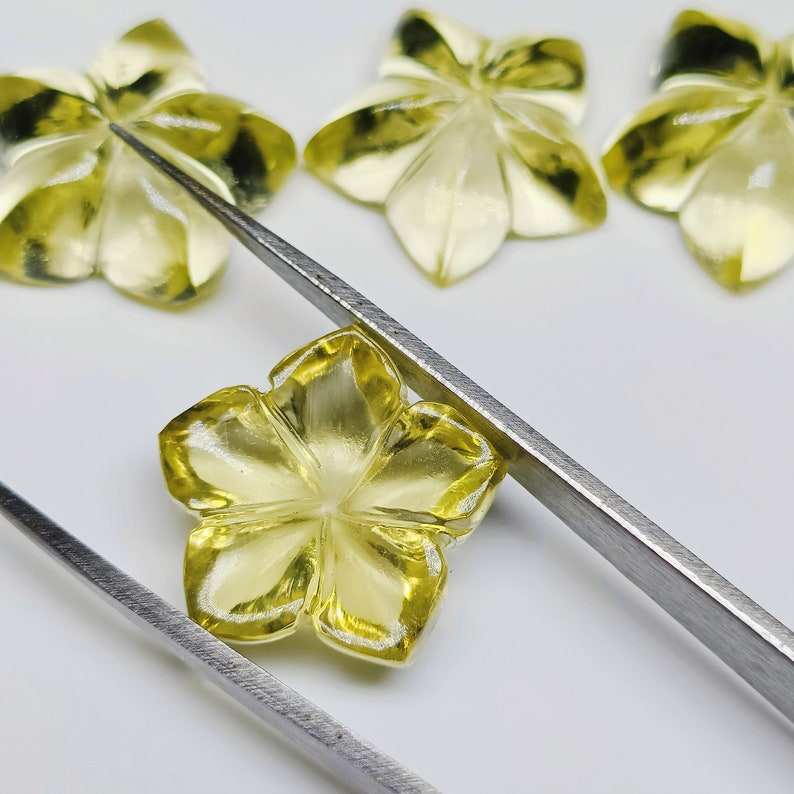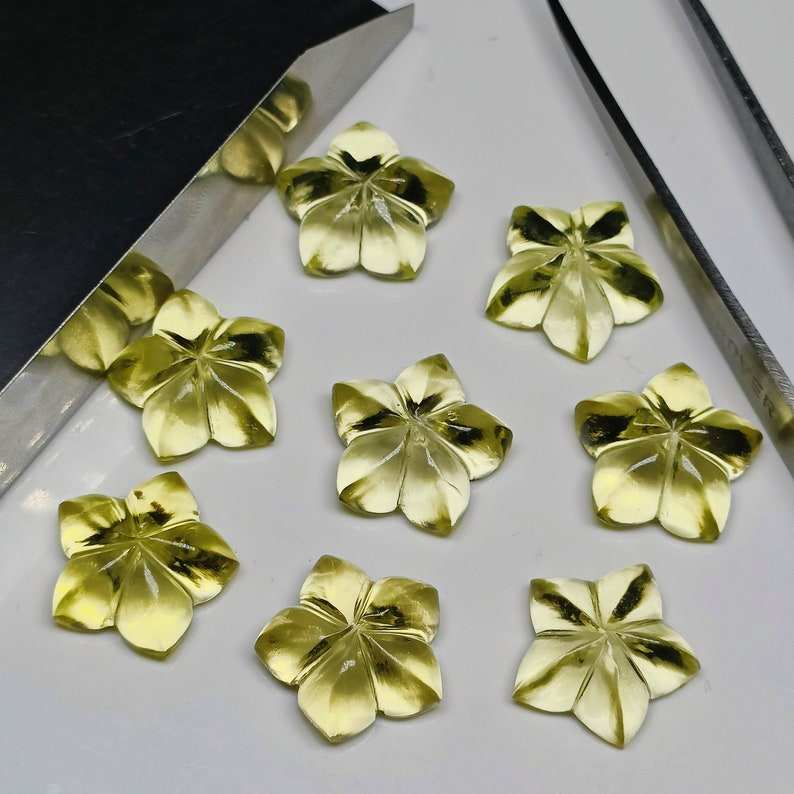 Pierre précieuse en quartz citron sculptée à la main en forme de fleur pour la fabrication de bijoux