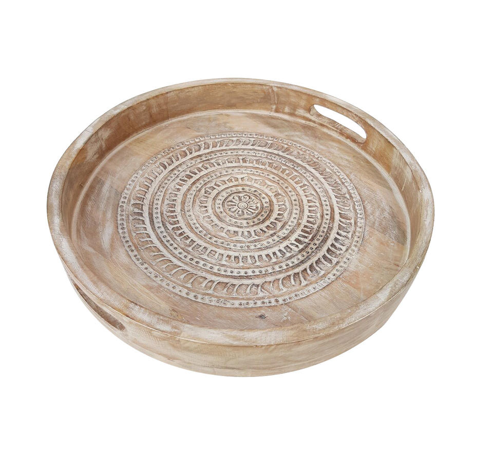 Product Name:Wooden Hand Carved Round Serving Tray With Handles