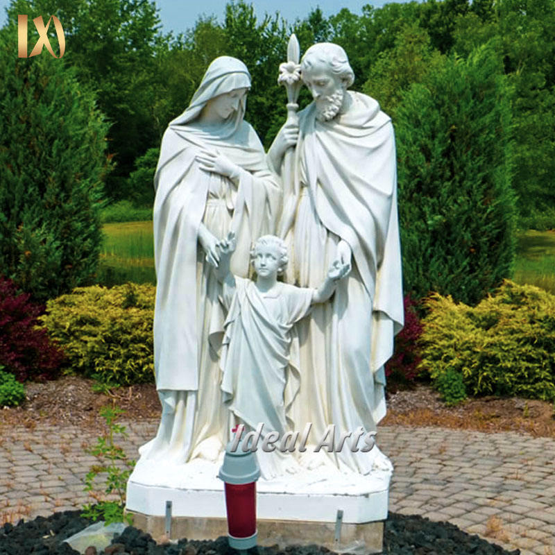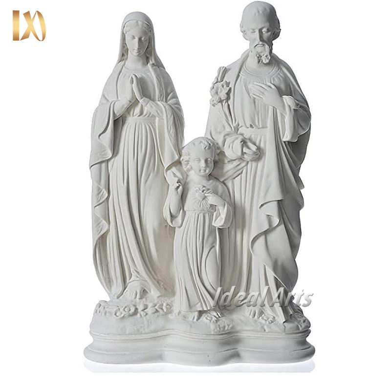Sculpture religieuse en marbre sculptée à la main, statue de la Sainte Famille, pierre blanche naturelle, art catholique pour la décoration d'église