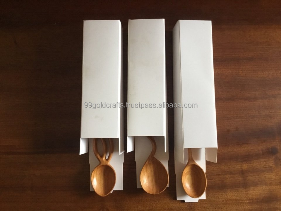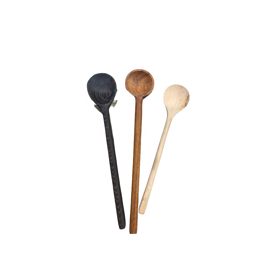 Cuillère à thé en bois naturel sculptée à la main avec long anneau pour servir des ustensiles de cuisine vaisselle décoration de fête